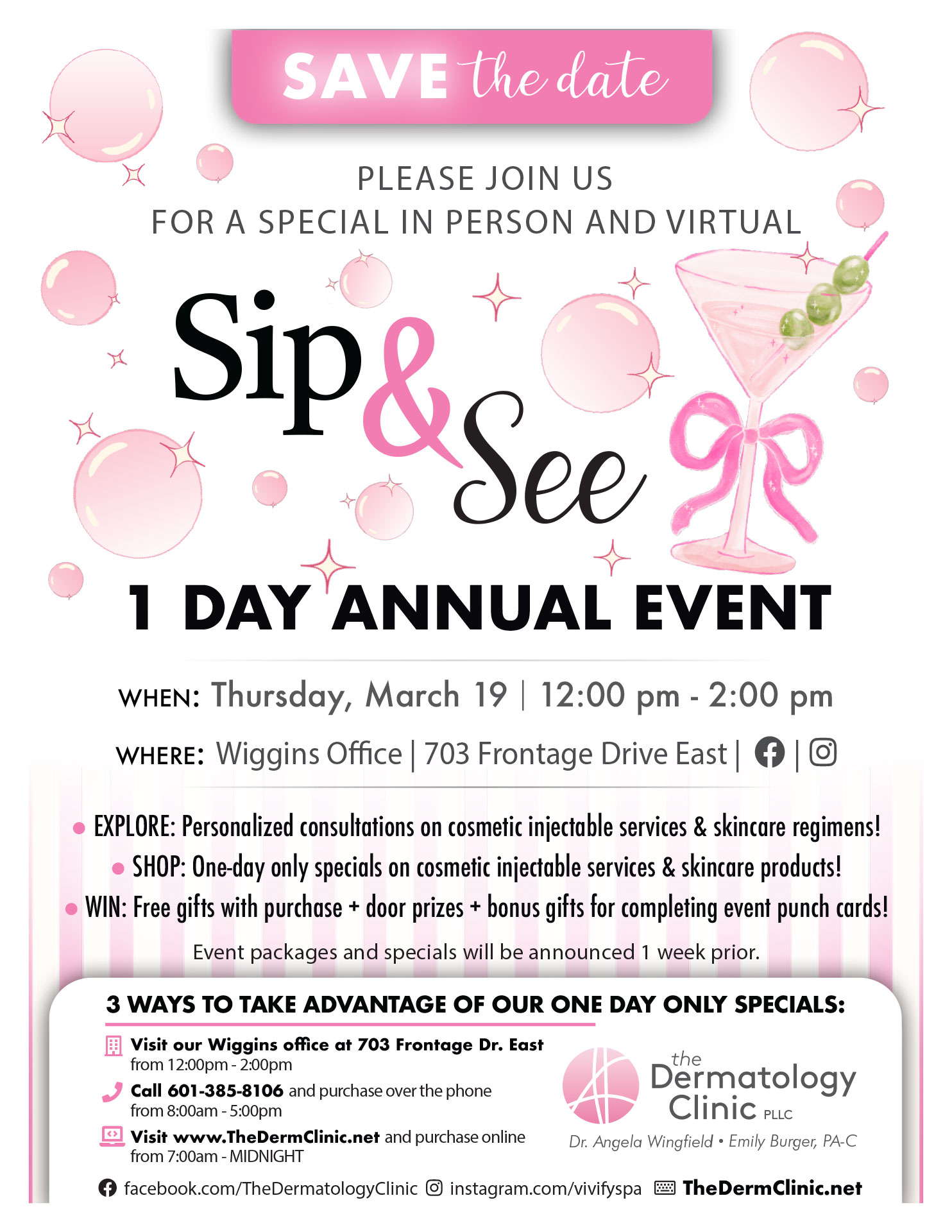 - SHOP: One-day only specials on cosmetic injectable services & skincare products!